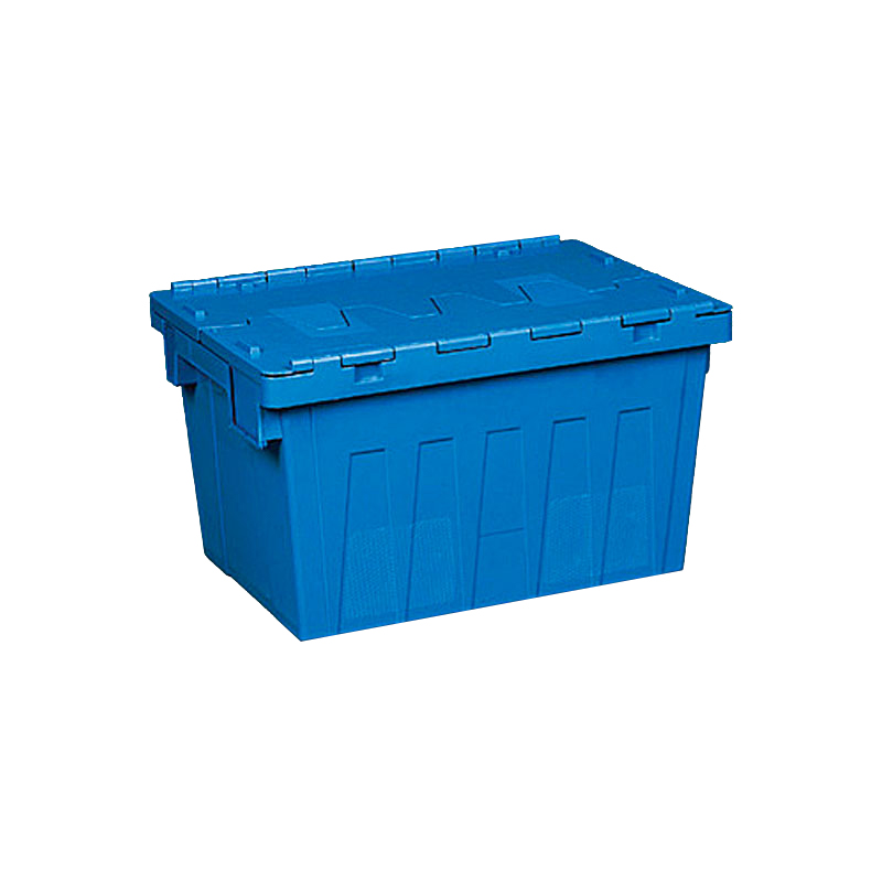 1. 物流箱為可插式、帶連體外翻箱蓋;把手搬運舒適,空箱套入時,把手在外。